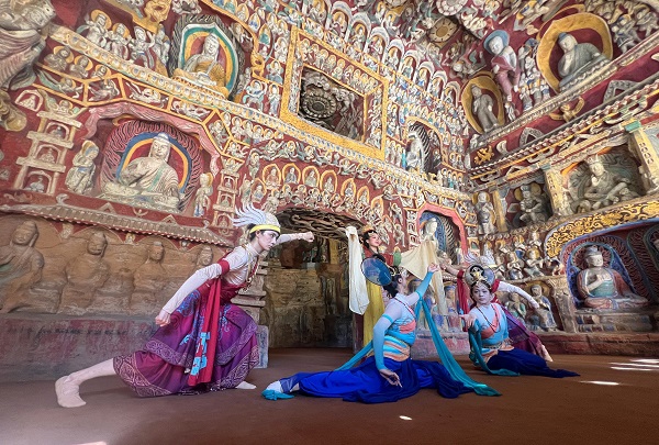 荣获“2023 全球世界遗产教育创新案例奖”的云冈乐舞,首次在上海亮相。这支乐舞由2022北京冬奥会开幕式分场导演田晴团队编排,以云冈飞天、力士形象为蓝本,融合北方游牧民族音乐风格,完美再现北魏胡汉艺术交融的乐舞场面,每逢周末和节假日定期上演。