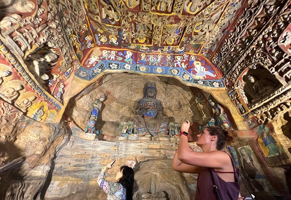 通过数字技术,石壁上的飞天、力士形象将“活”起来,再现古代舞蹈场景;观众还可穿戴北魏服饰与云冈主题服饰,化身“画中人”,沉浸式感受北魏美学。